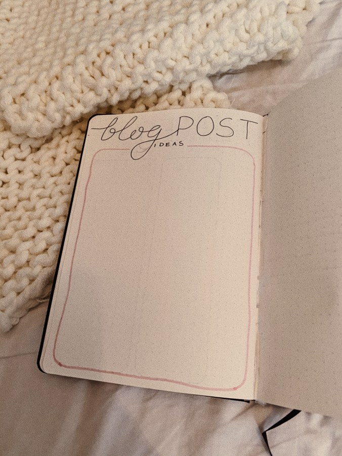 The most used out of all of these spreads will be ‘blog post ideas’. I want to completely cram this page so that when I have no ideas I can take a look at this page and find some! Maybe one page won’t be enough, but the page on the left is blank just in case! If you have any ideas for blog posts you’d like to see from me in the new year, leave them in the comments or DM me on Instagram.